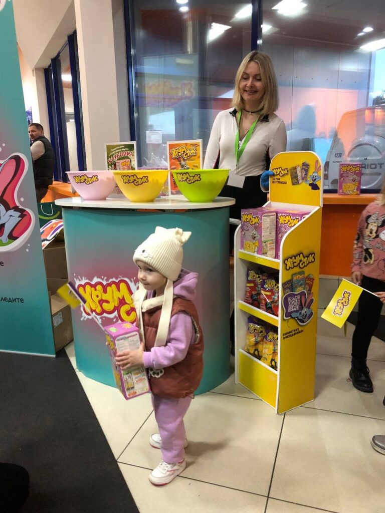 Посетители смогли попробовать новинки от бренда Хрумстик, а также сделать совместное фото с любимым персонажем.